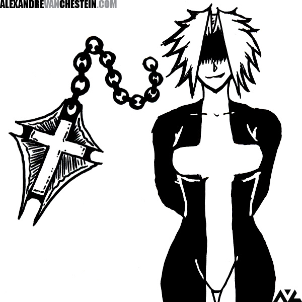 The title piece to a comic proposal simply named 5, this was a purely digital project. The character was drawn using OpenCanvas, then transplanted into Photoshop for the coloring.
