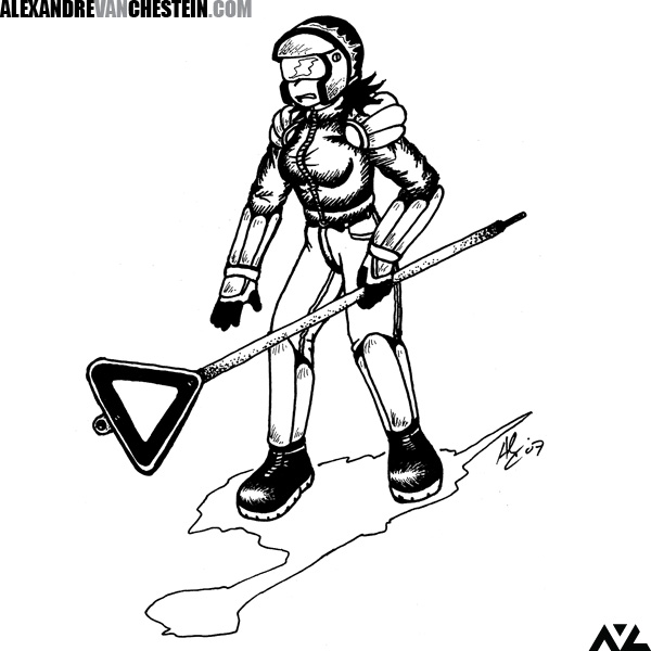 Cette version plutôt dure de Megaman (aussi nommé Rockman) fut inspirée par le groupe The Protomen. Il est stimulant de réimaginer des franchises connues; ce projet m'a également permis de me concentrer sur les détails, notamment les bosses et blessures.