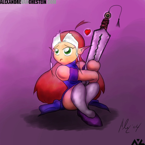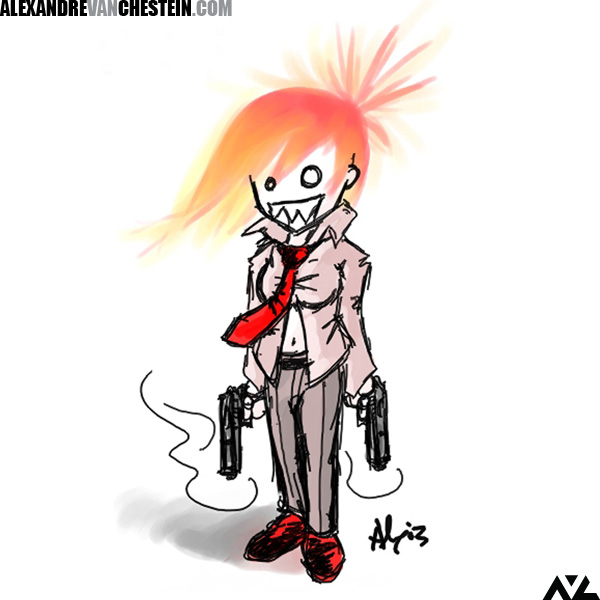 The title piece to a comic proposal simply named 5, this was a purely digital project. The character was drawn using OpenCanvas, then transplanted into Photoshop for the coloring.