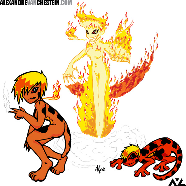 Tout a commencé avec un dessin au crayon de plomb qui fut ensuite numérisé et travaillé dans Photoshop. Des couleurs principales ont été ajoutées au personnage, ainsi qu'un jeu d'ombrages tenant compte de la lumière provenant du plancher. Les effets de lumières colorées furent ajoutées ensuite, créées de toute pièce dans le programme. Les réflections de lumières ont suivi, le tout se terminant avec un léger effet de filtre pour ajouter le brouillard. |